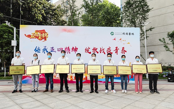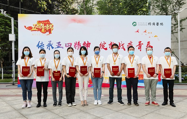 今年医院首次设置了“同济青年五四奖章”奖项,全院10个青年代表、10个青年集体获此殊荣。获得首届“同济青年五四奖章”个人称号的是超声影像科陈经远、肾内科董蕾、创伤外科郭江凤、肿瘤科李倩侠、急诊医学科陆俊、保卫处石炯、神经内科谭雨滴、感染科张霓、儿科张晓乐和麻醉科周亚群。获得首届“同济青年五四奖章”集体称号的是同济医院青年护肾小分队、同济医院青年护心小分队、同济麻醉插管青年小分队、呼吸与危重症医学科青年抗疫突击队、中法新城院区B12新冠肺炎重症病房青年医护团队、感染科抗疫青年先锋队、心脏大血管外科ECMO青年小分队、中法新城院区重症儿童及新生儿发热病房青年医护团队、抗击新冠肺炎疫情后勤保障青年冲锋队、“逆行而上、守护平安”青年保卫突击队。